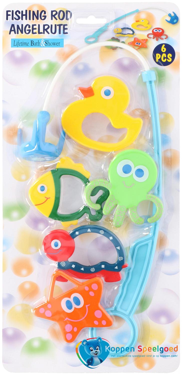 Vishengel 6 delig. Vind jij het leuk om te vissen? Oefen dan alvast met deze set. Bevat een vishengel en vijf vissen. Leuke vorm van sport en spel.