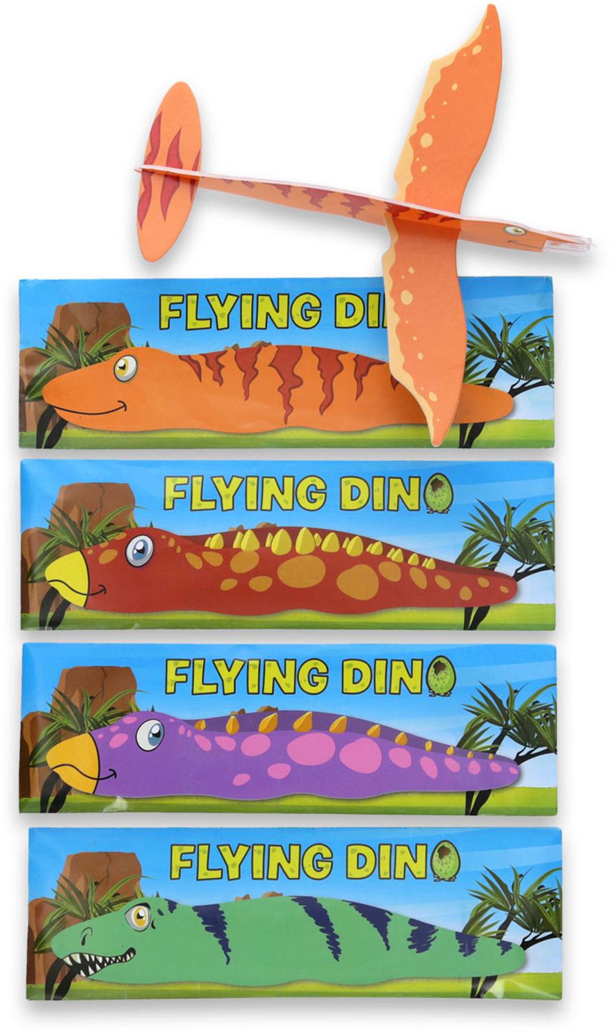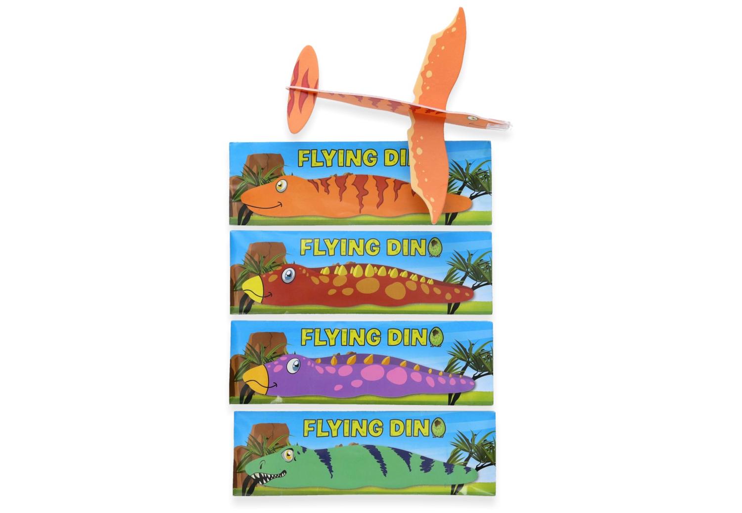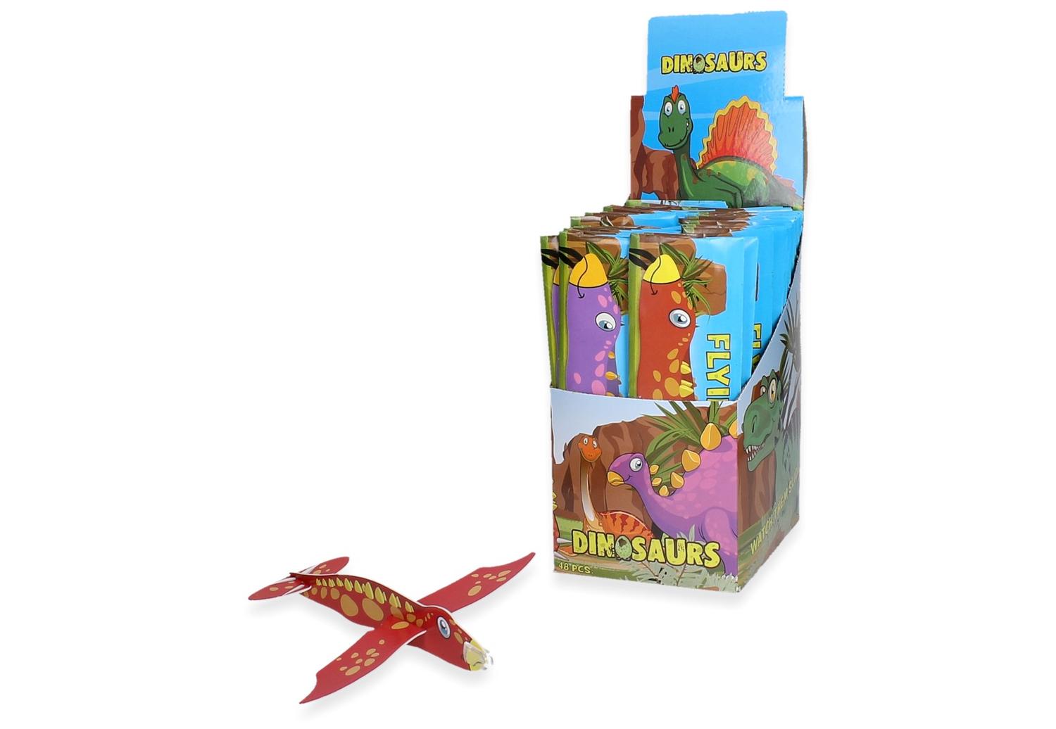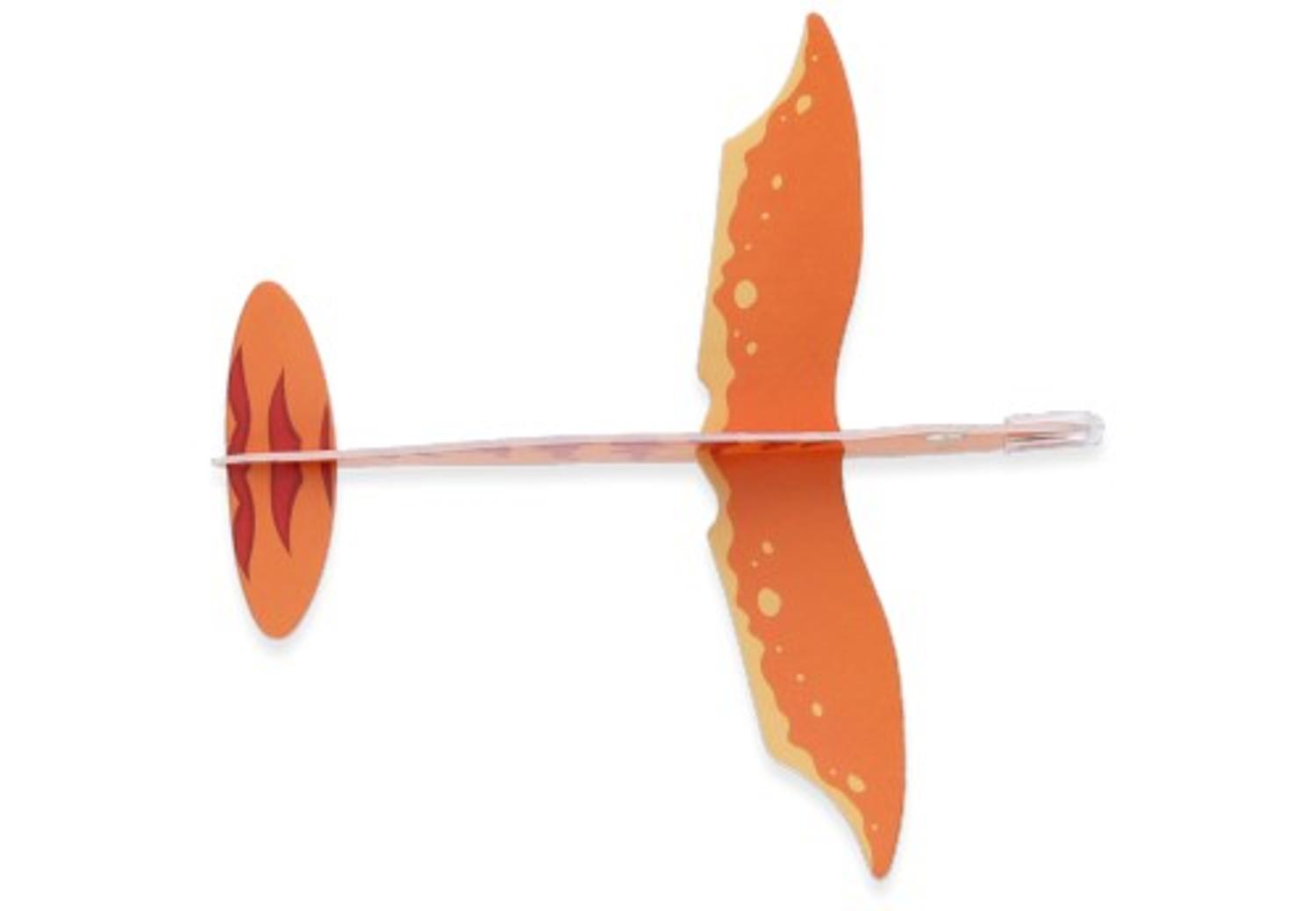 Lichtgewicht zweefvliegtuigje met een dino print, gemaakt van tempex (geperst schuim).