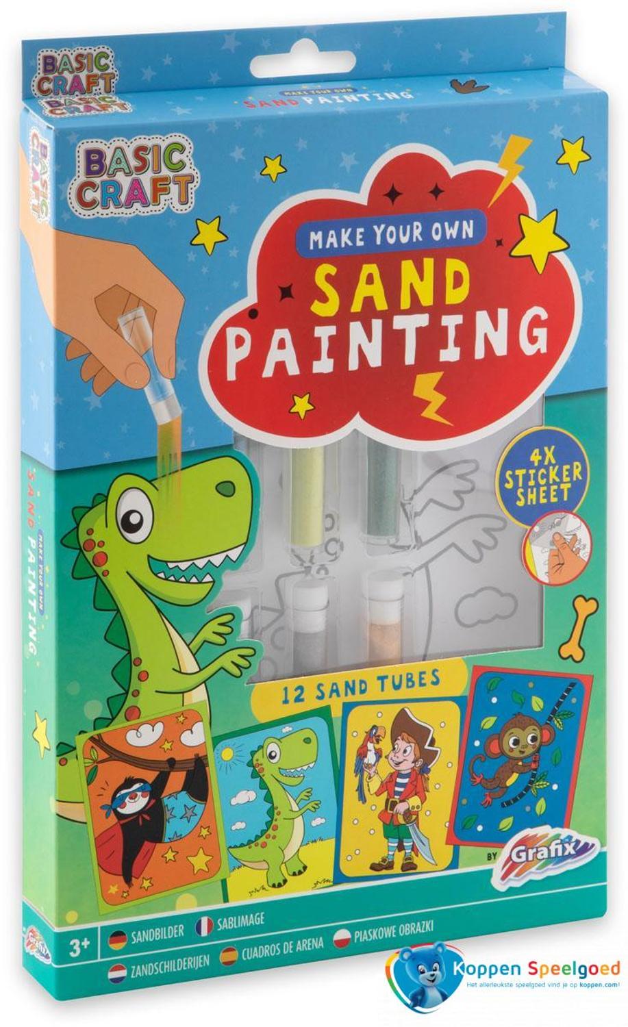 Maak je eigen zandschilderij met deze mooie set! Bevat zelfklevende voorbeeldbladen, gekleurd zand en 4 stickervellen.