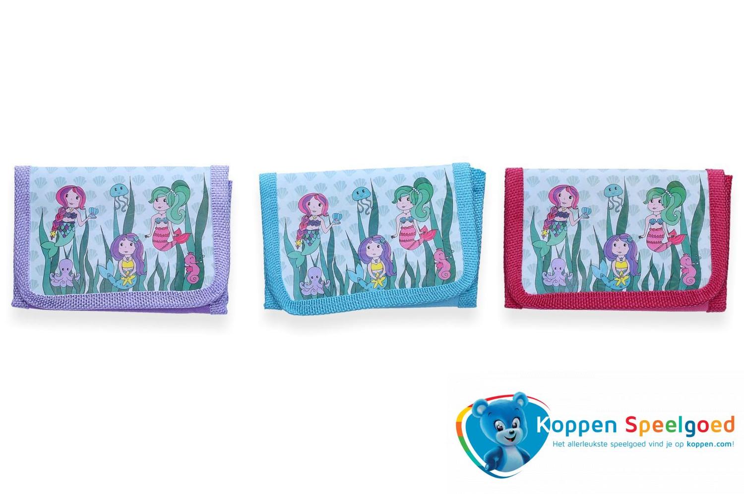 Een handige portemonnee met de opdruk van een zeemeermin. Aan de binnenkant zit een vak met ritssluiting.