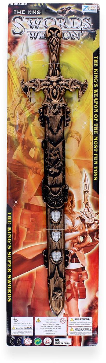 Een speelzwaard op een kaart van karton. Het bestaat uit een zwaard en een schede. Leuk om je te verkleden als ridder of piraat!